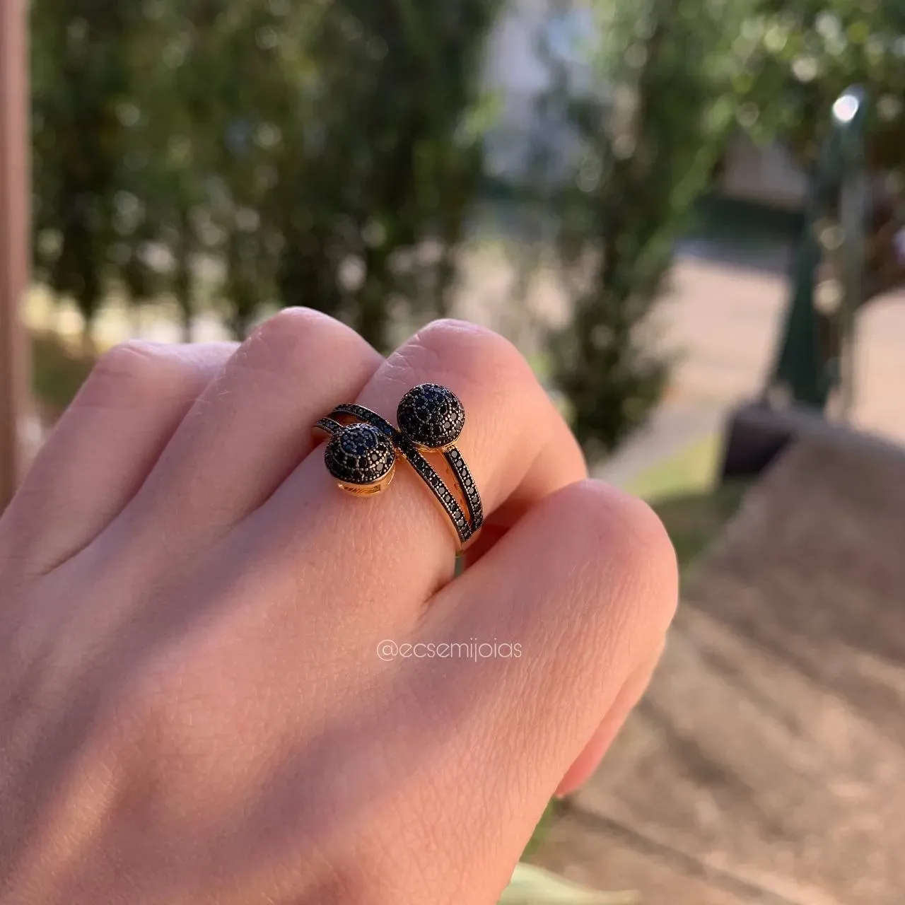 Anel 2 bolas e aro cravejado- banhado a ouro 18kConfira opiniões e avaliações de clientes!