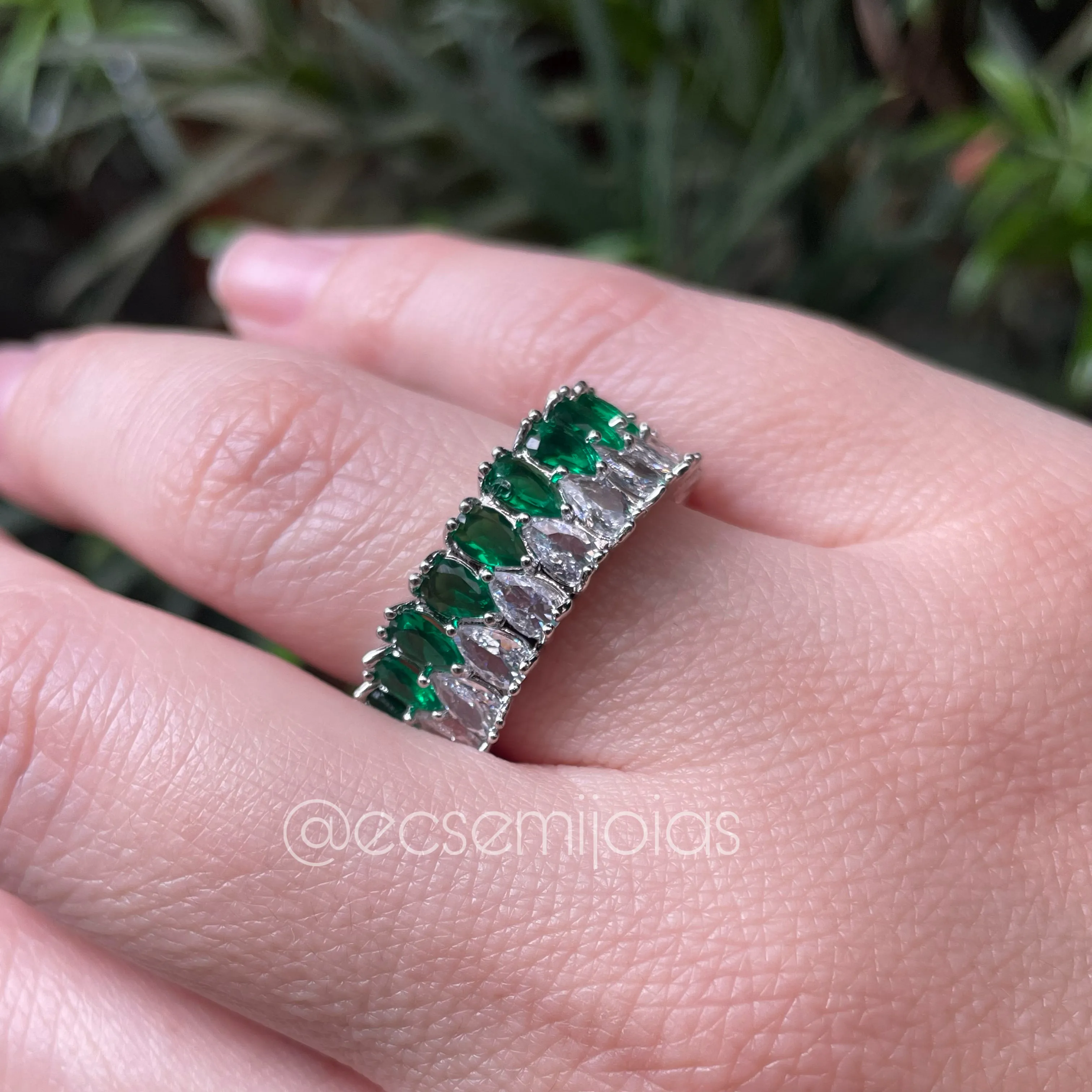 Anel com 100% de zircônias gotas (2 fileiras) - banhado a prata 925Confira opiniões e avaliações de clientes!