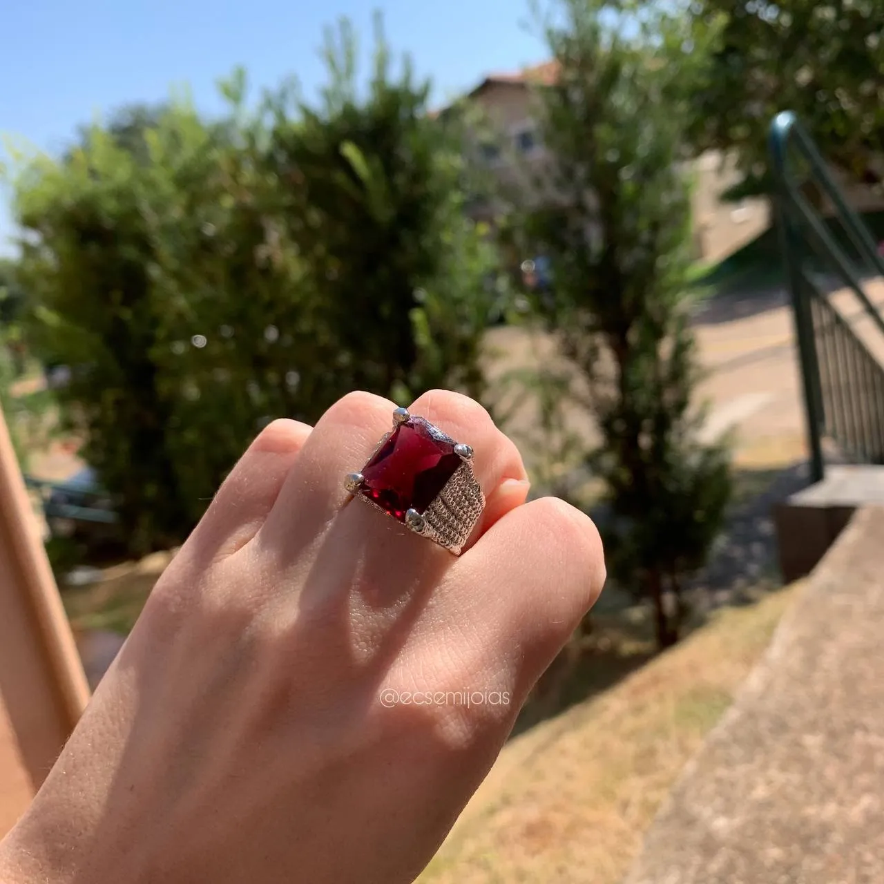 Anel com filetes bombardeado e pedra - banhado a ródio brancoConfira opiniões e avaliações de clientes!