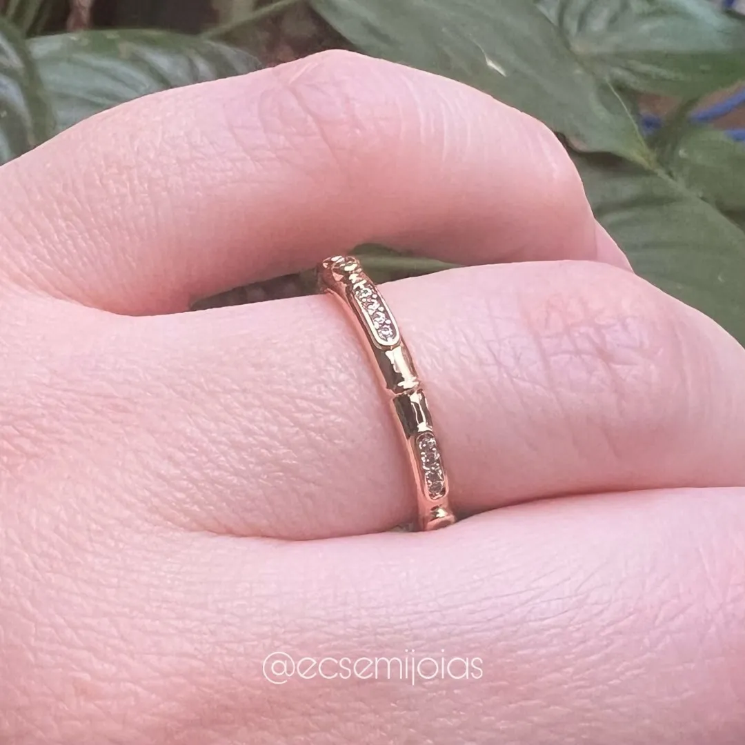 Anel com partes elevadas com fileiras cravejadas e zircônias intercaladas - banhado a ouro 18kConfira opiniões e avaliações de clientes!