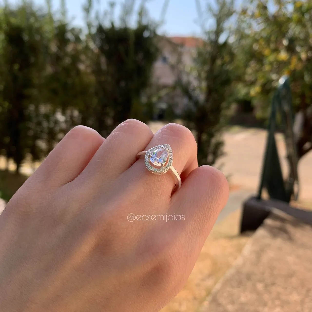 Anel de pedra gota 6x8 mm - banhado a prata 925Confira opiniões e avaliações de clientes!