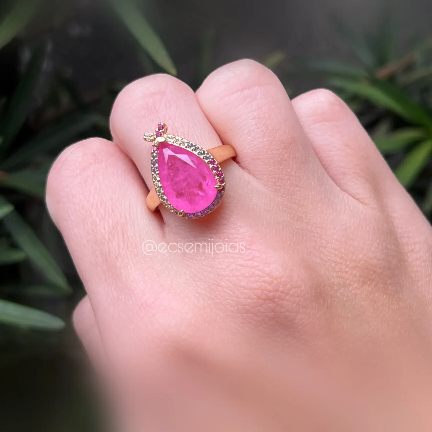 Anel pedra fusion gota centro cravejado em volta -pedra 1x1,5cm - banhado a ouro 18kConfira opiniões e avaliações de clientes!
