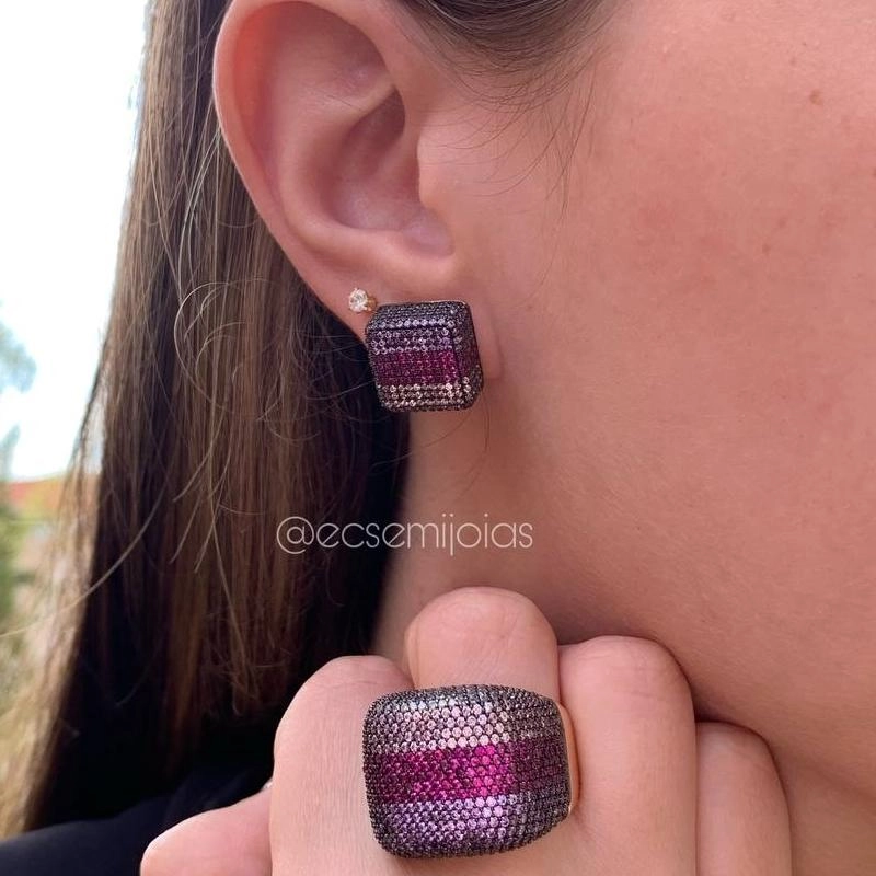 Anel quadrado cravejado com listraConfira opiniões e avaliações de clientes!