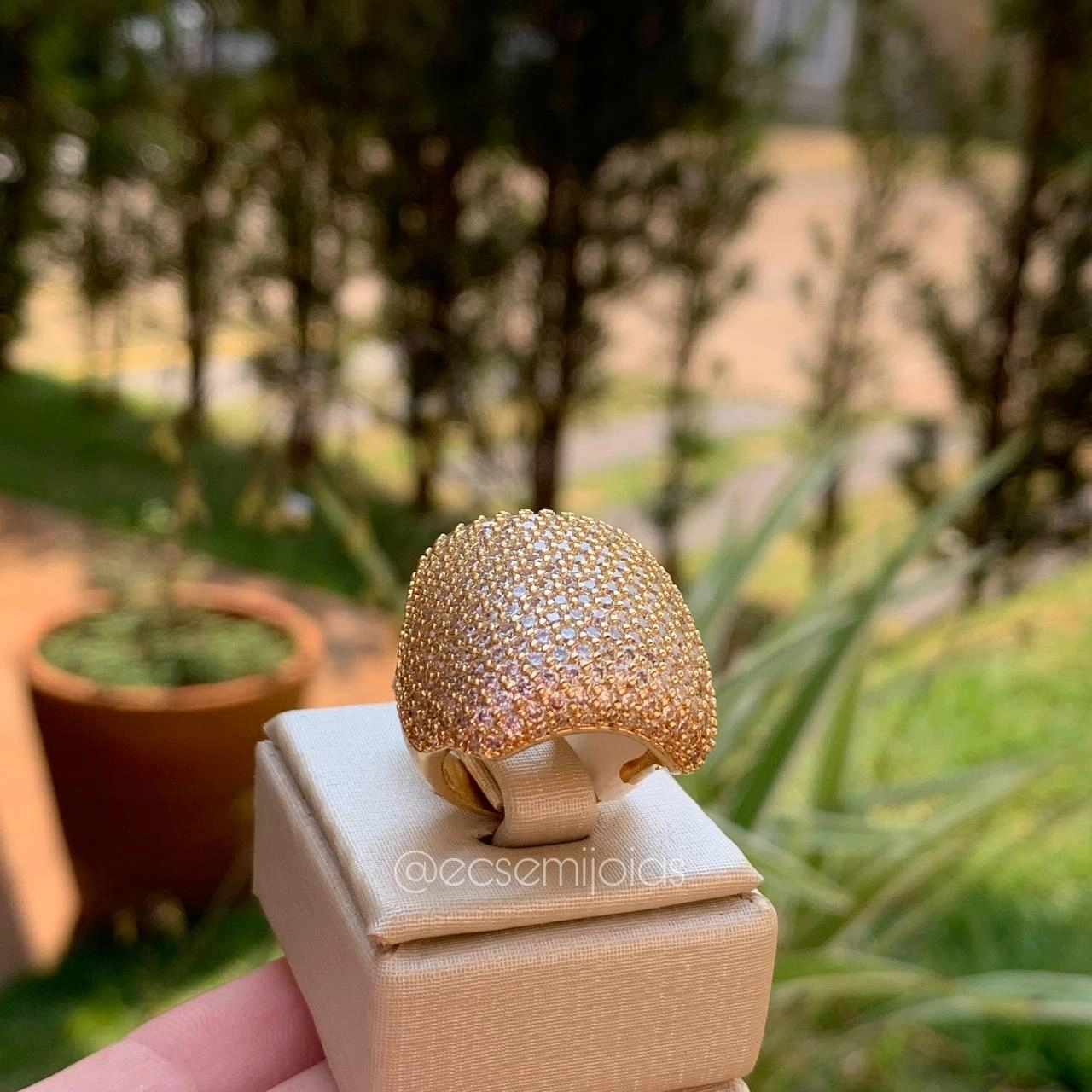 Anel quadrado diferente cravejado em cima e nas lateraisConfira opiniões e avaliações de clientes!