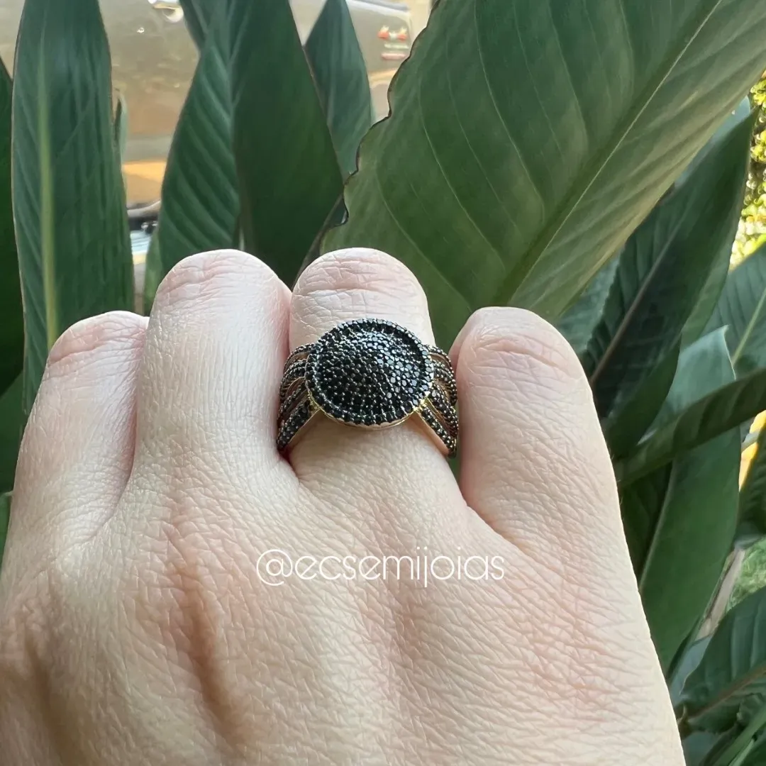 Anel redondo em cima cravejado com 4 filetes de zircônias do lado - banhado a ouro 18kConfira opiniões e avaliações de clientes!