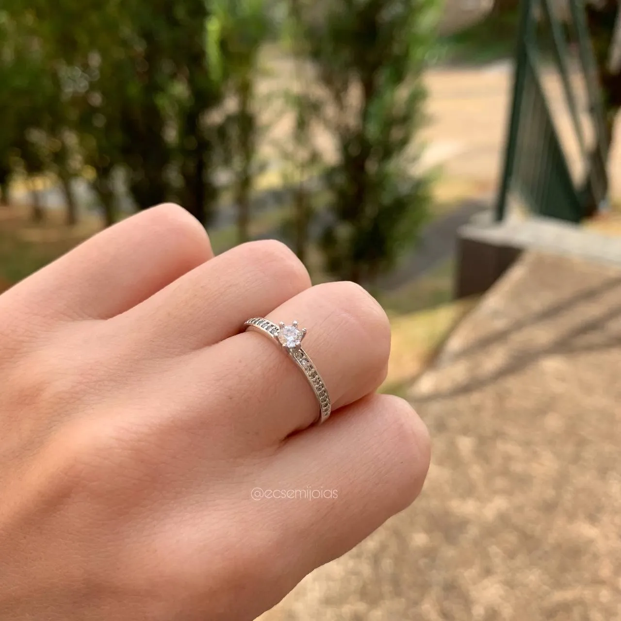 Anel solitário com aro cravejado - banhado a ródio brancoConfira opiniões e avaliações de clientes!
