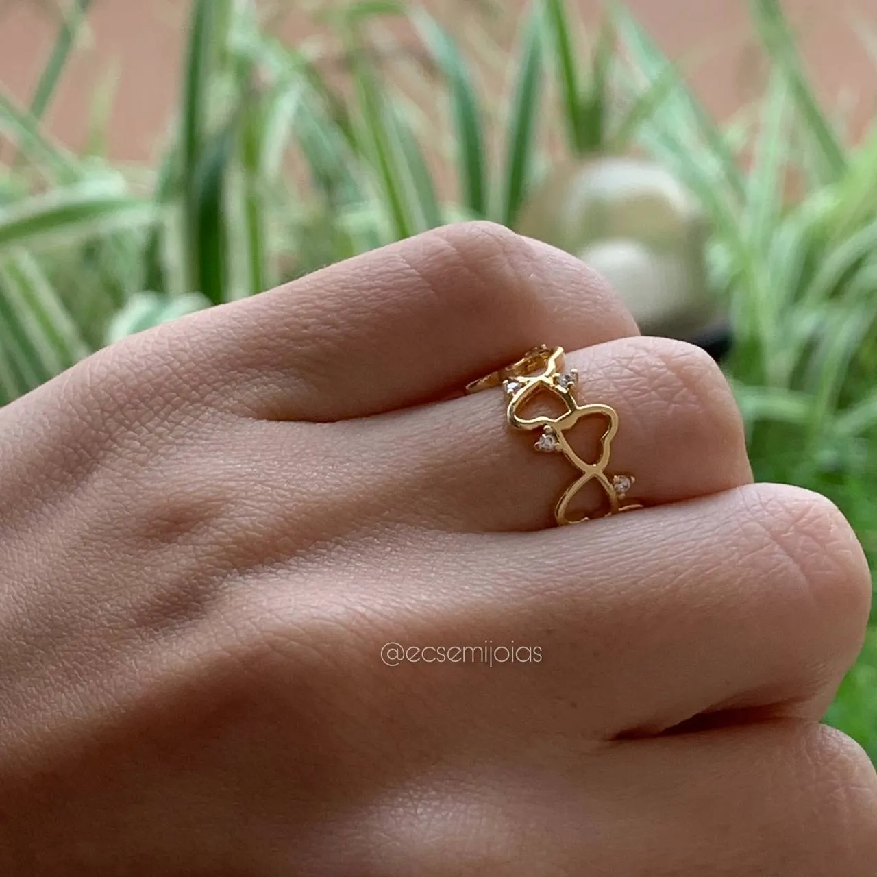 Anel vários corações vazados e zircônias - banhado a ouro 18kConfira opiniões e avaliações de clientes!