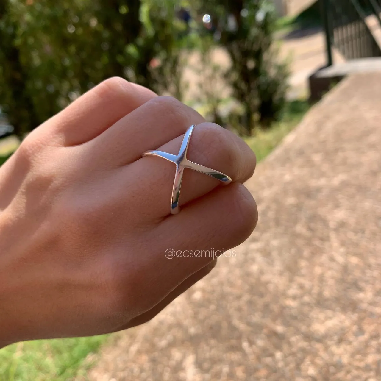 Anel X liso - banhado a prata 925Confira opiniões e avaliações de clientes!