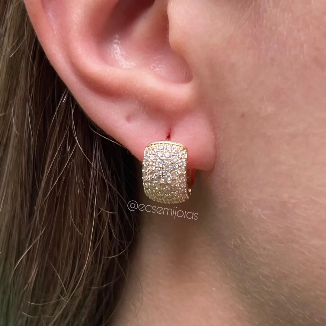 Argola com com 6 fileiras cravejadas - 9x15mm - banhado a ouro 18kConfira opiniões e avaliações de clientes!