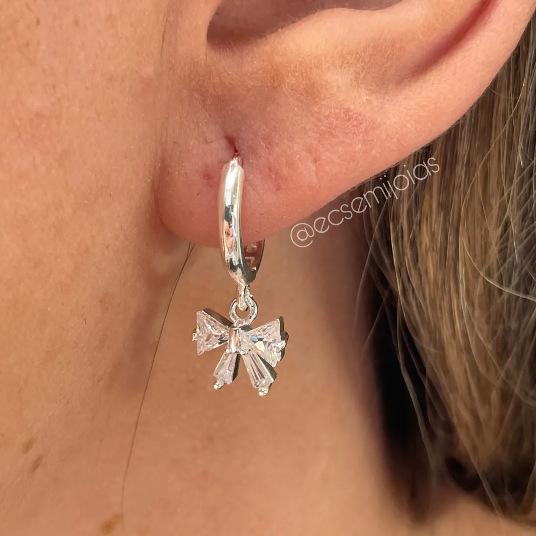 Argola com pingente de laço com zircônias - banhado a prata 925Confira opiniões e avaliações de clientes!