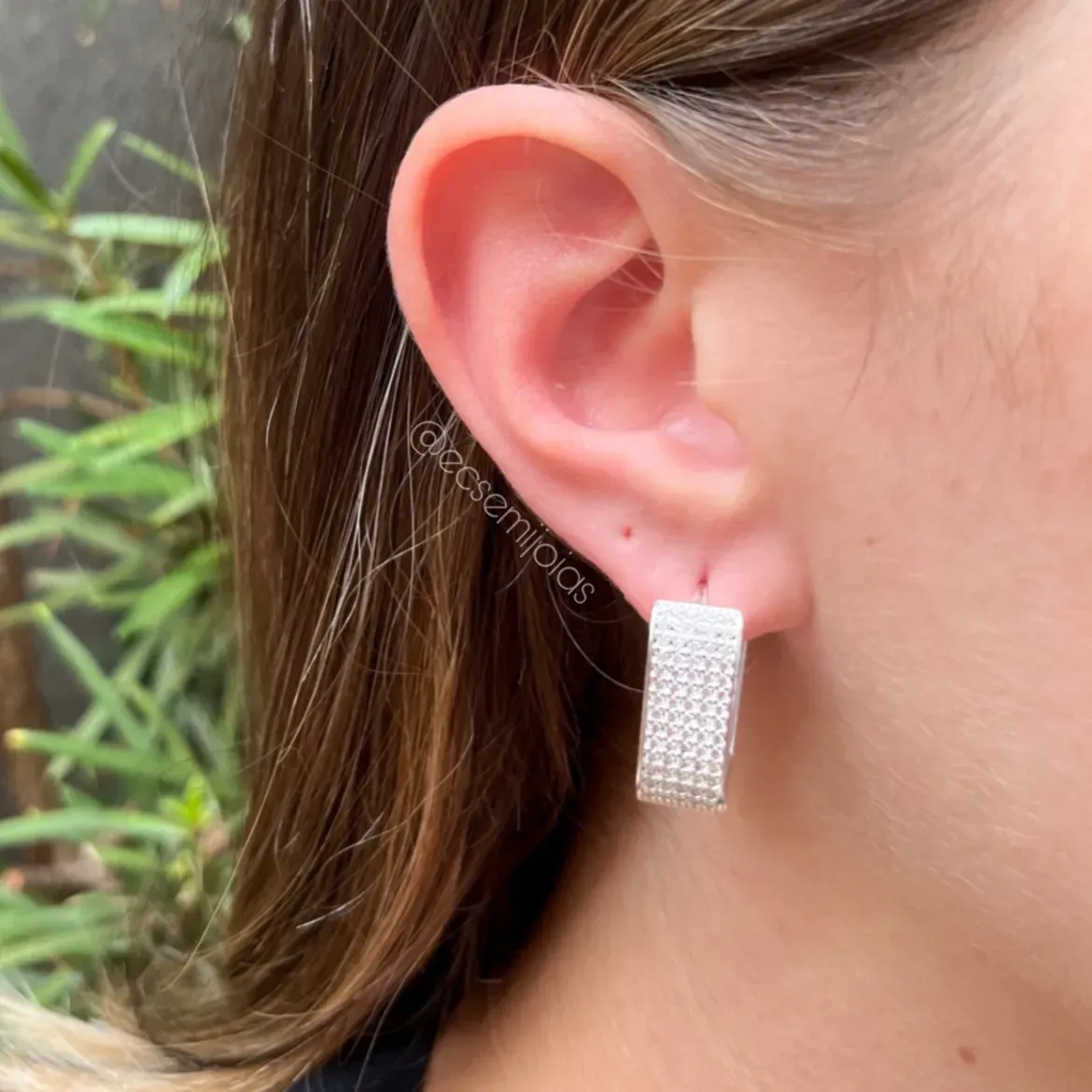 Argola retangular com 5 fileiras cravejadas por dentro e fora - 8x22mm - banhado a prata 925Confira opiniões e avaliações de clientes!