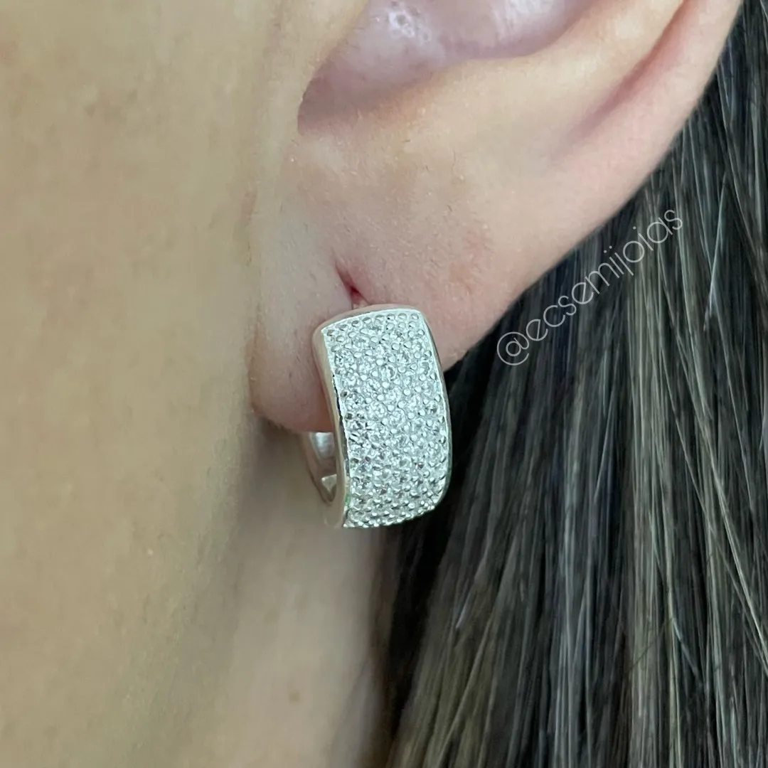 Argola tranqueta com 5 fileiras cravejadas - 2,6cm x 7mm - banhado a prata 925Confira opiniões e avaliações de clientes!