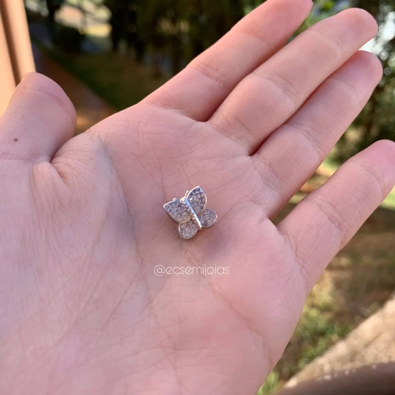 Berloque divisor borboleta cravejada - banhado a ródio brancoConfira opiniões e avaliações de clientes!