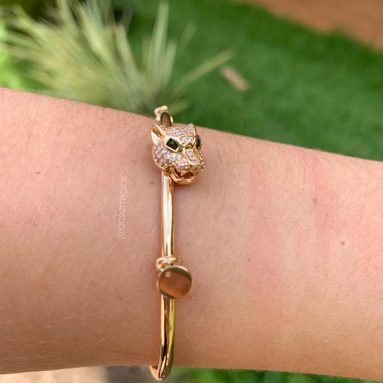 Bracelete tubolar com pantera cravejadaConfira opiniões e avaliações de clientes!