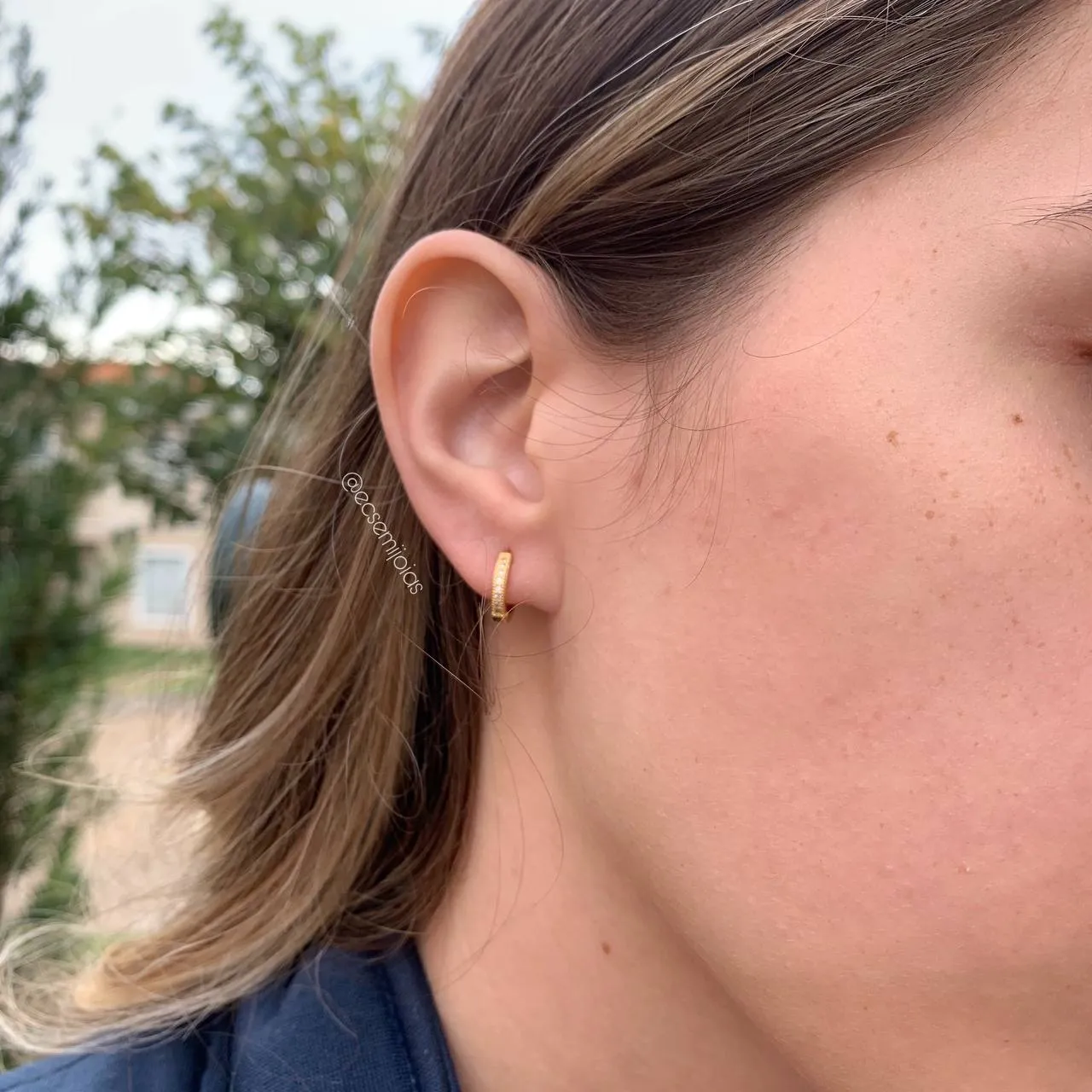 Brinco argola 1 fileira de pedras 0.95mm pequena - banhado a ouro 18kConfira opiniões e avaliações de clientes!