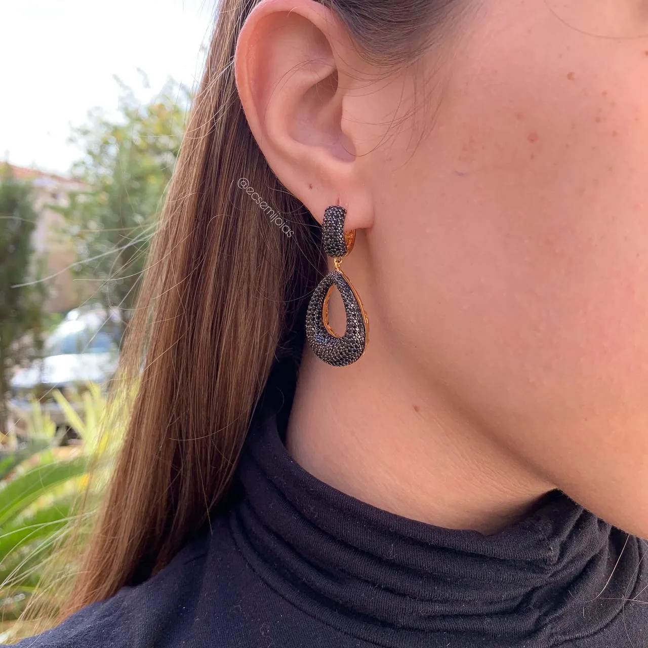 Brinco argola com gota pendurada - banhado a ouro 18kConfira opiniões e avaliações de clientes!