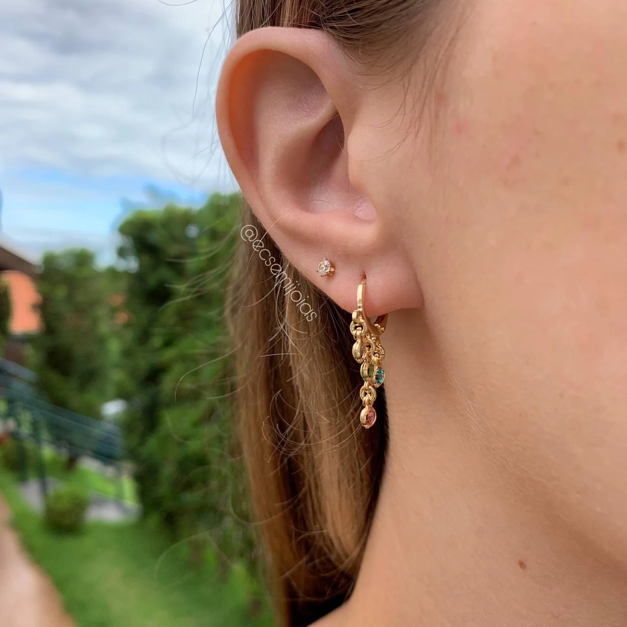 Brinco argola tranqueta pedrinhas penduradas - banhado a ouro 18kConfira opiniões e avaliações de clientes!