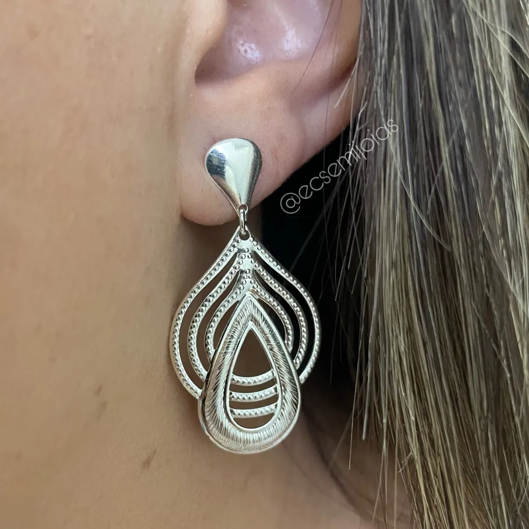 Brinco com várias gotas vazadas bombardeadas - banhado a prata 925Confira opiniões e avaliações de clientes!