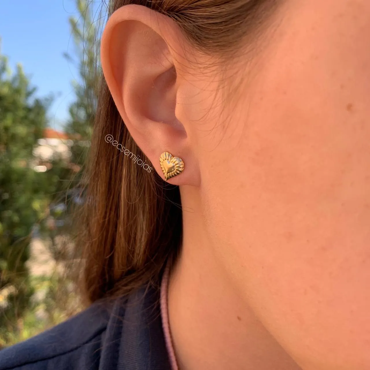 Brinco coração liso abaulado trabalhado em volta - banhado a ouro 18kConfira opiniões e avaliações de clientes!