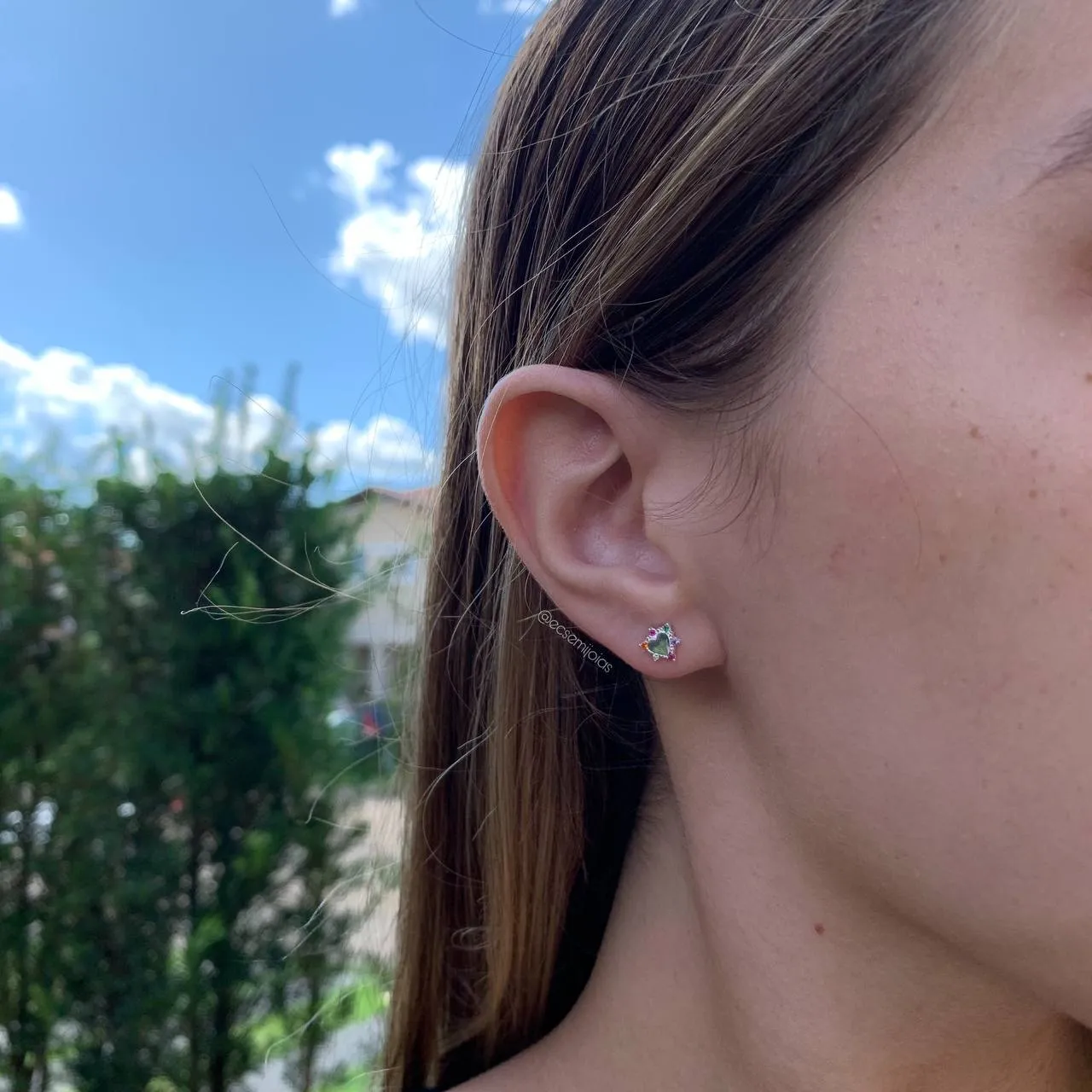 Brinco coração liso com zircônias em volta P - banhada a prata 925 - coleção love colorsConfira opiniões e avaliações de clientes!