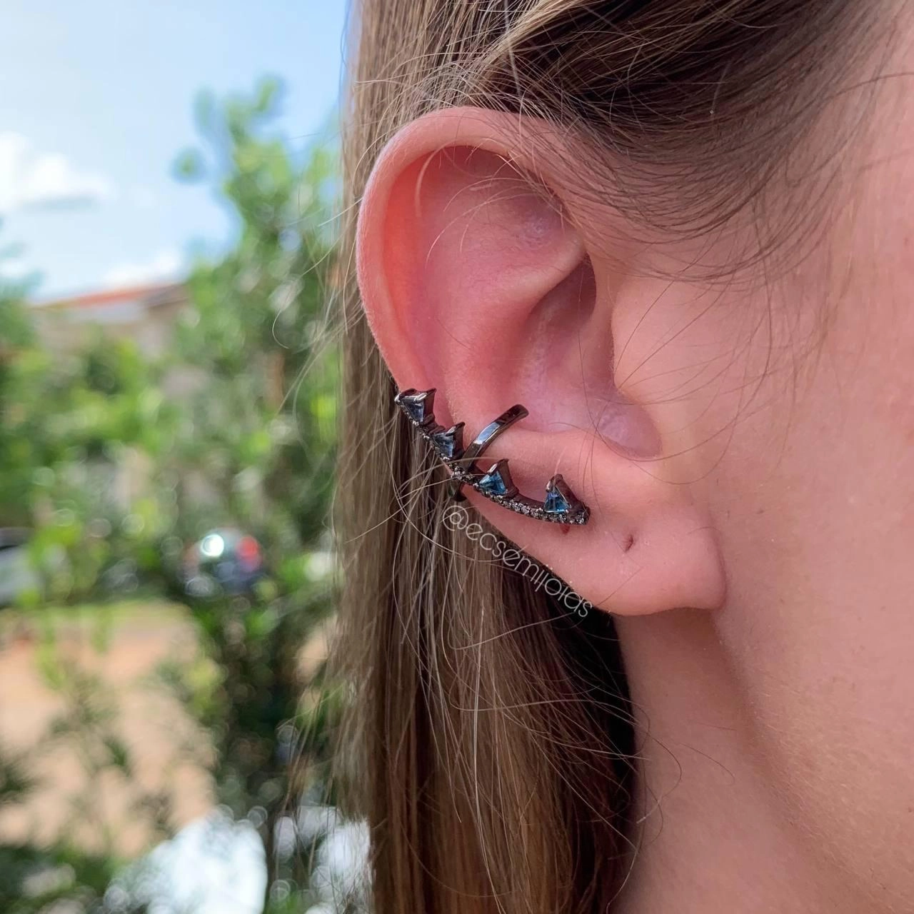 Brinco ear cuff 4 pedras trilhon e filete cravejado - banhado a ródio negroConfira opiniões e avaliações de clientes!