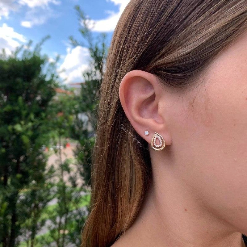 Brinco gota vazada cravejada - banhada a ouro 18kConfira opiniões e avaliações de clientes!