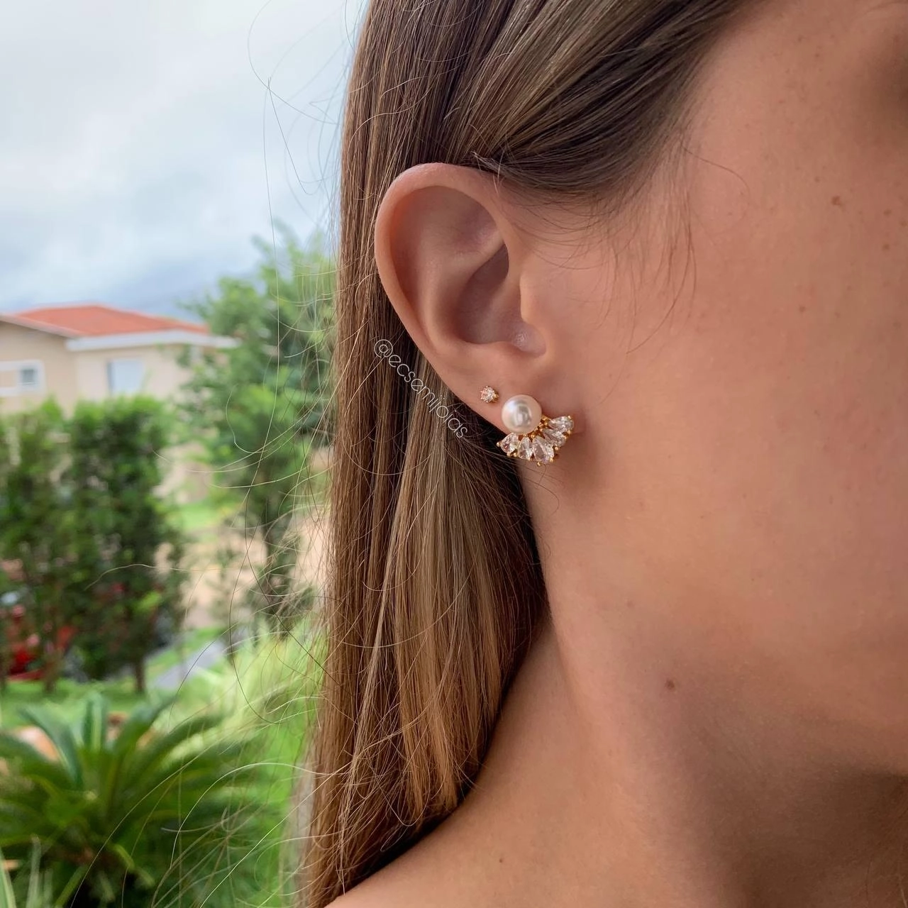 Brinco leque cravejado com uma pérola- banhado a ouro 18kConfira opiniões e avaliações de clientes!