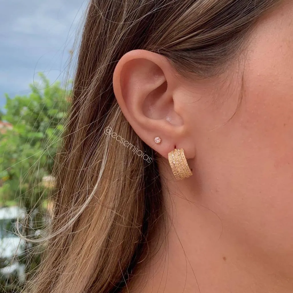 Brinco meia argola larga cravejada - banhado a ouro 18kConfira opiniões e avaliações de clientes!