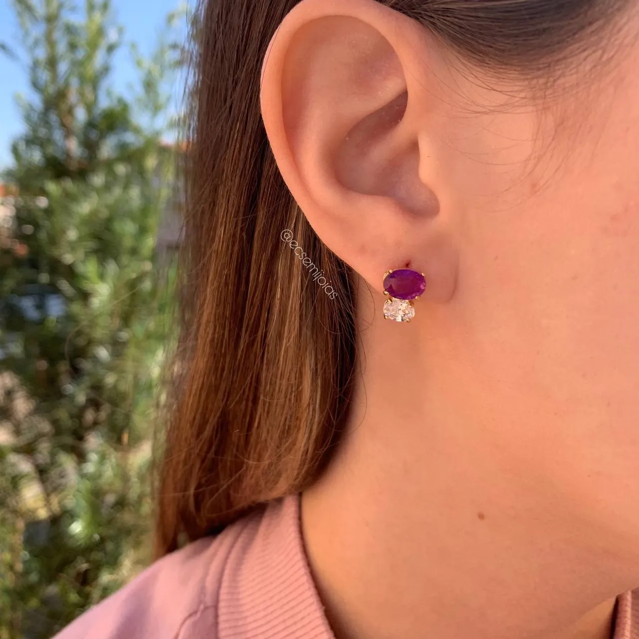 Brinco pedra oval - banhado a ouro 18kConfira opiniões e avaliações de clientes!