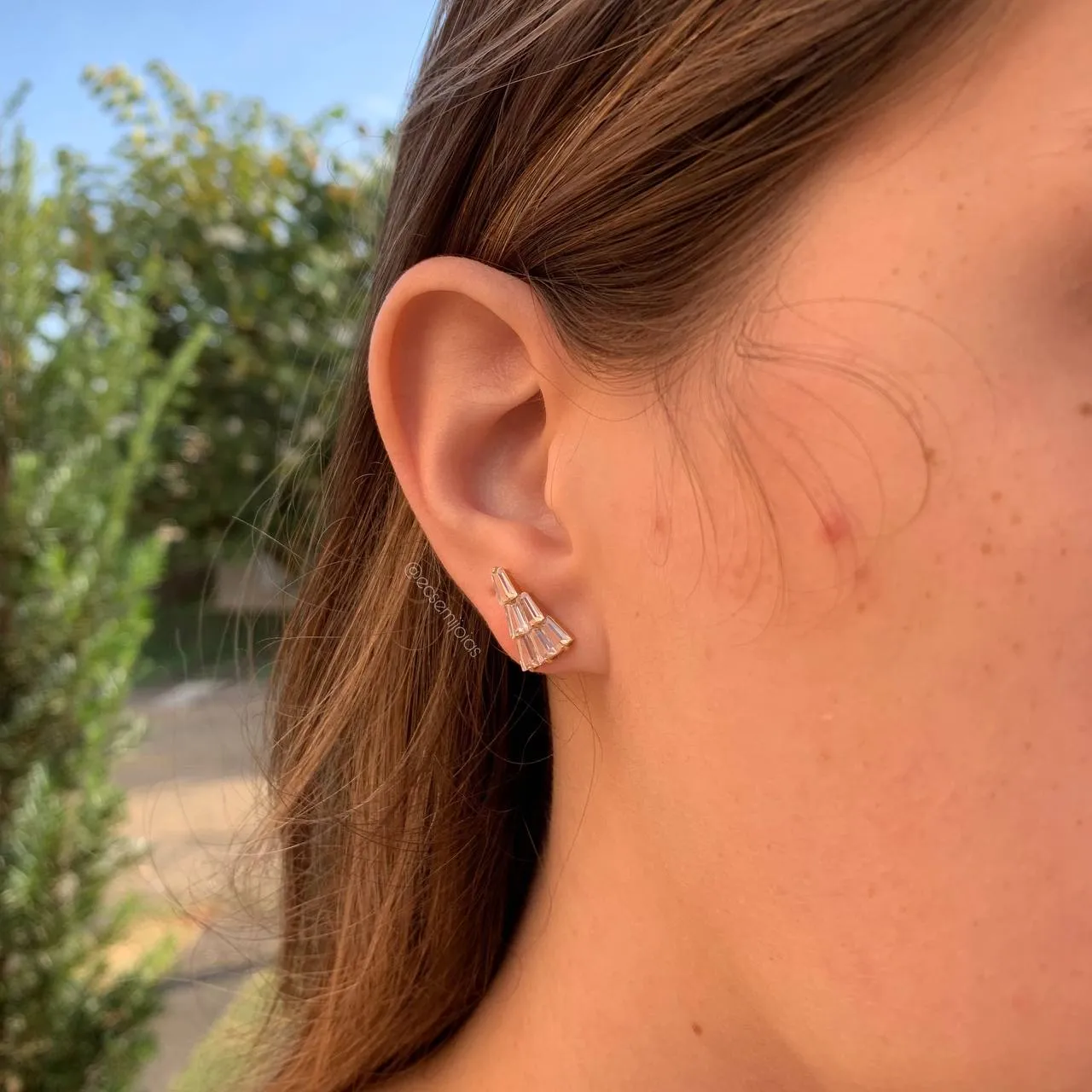 Brinco pequeno triângulo de baguetes - banhado a ouro 18kConfira opiniões e avaliações de clientes!