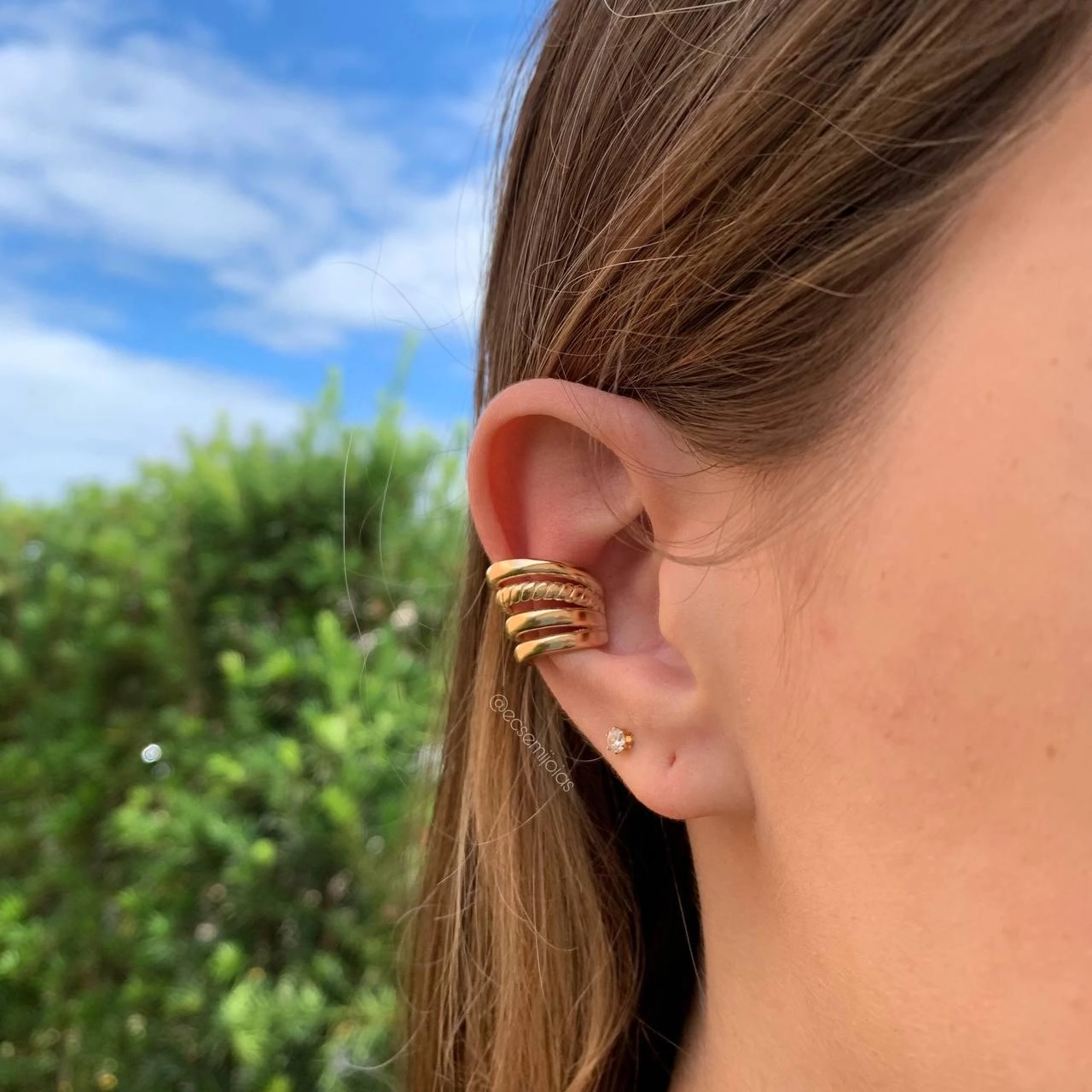 Brinco piercing 4 fios um trabalhado - banhado a ouro 18kConfira opiniões e avaliações de clientes!