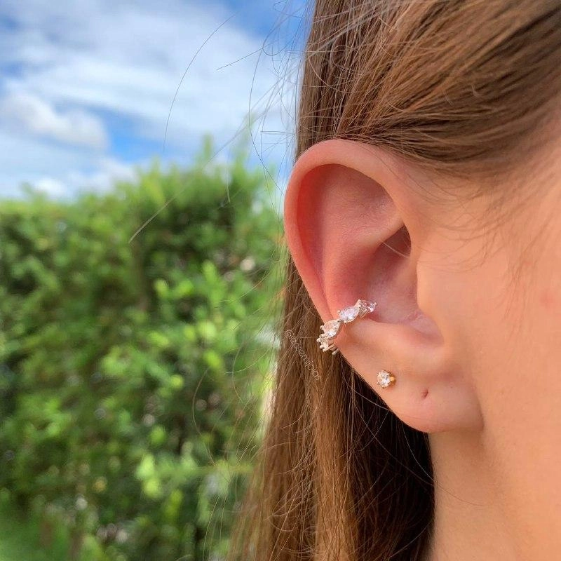 Brinco piercing 5 zircônias - banhado a prata 925Confira opiniões e avaliações de clientes!