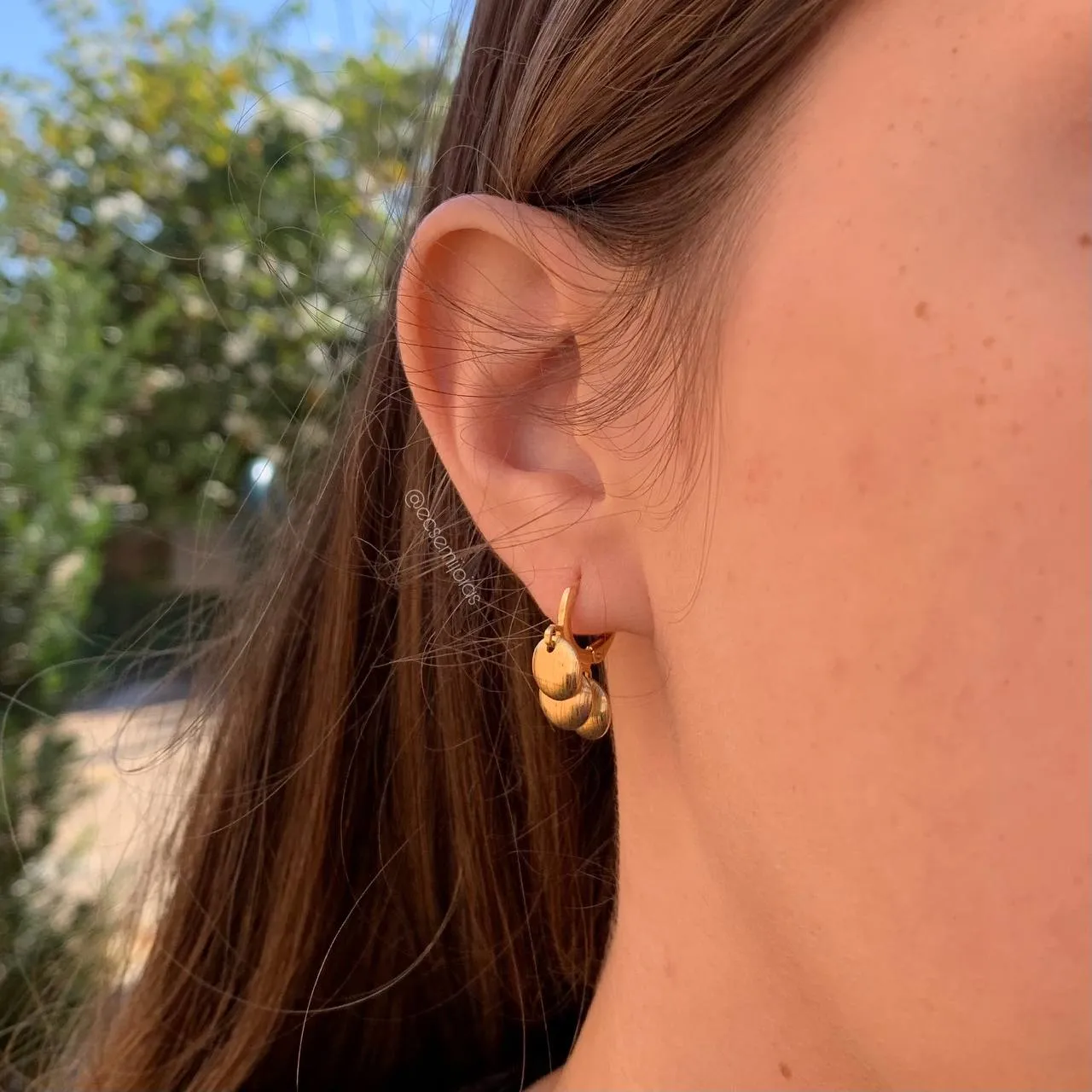 Brinco tranqueta com 3 chapas redondas menor - banhado a ouro 18kConfira opiniões e avaliações de clientes!