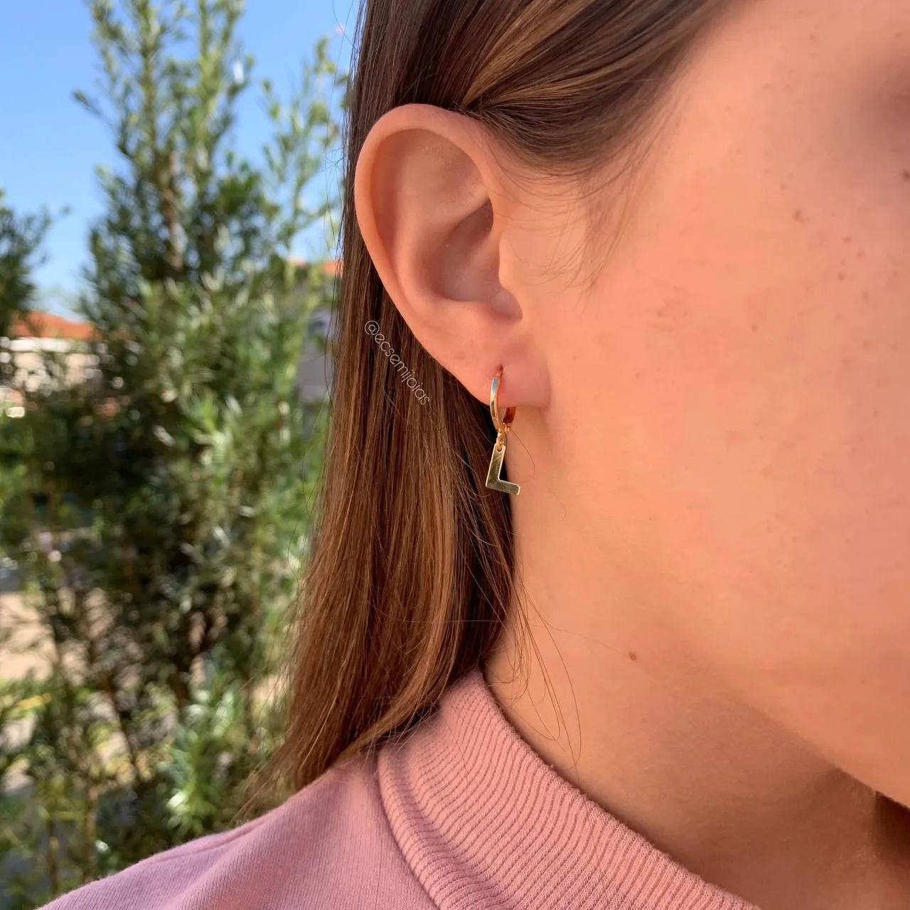 Brinco tranqueta com letra - banhado a ouro 18kConfira opiniões e avaliações de clientes!