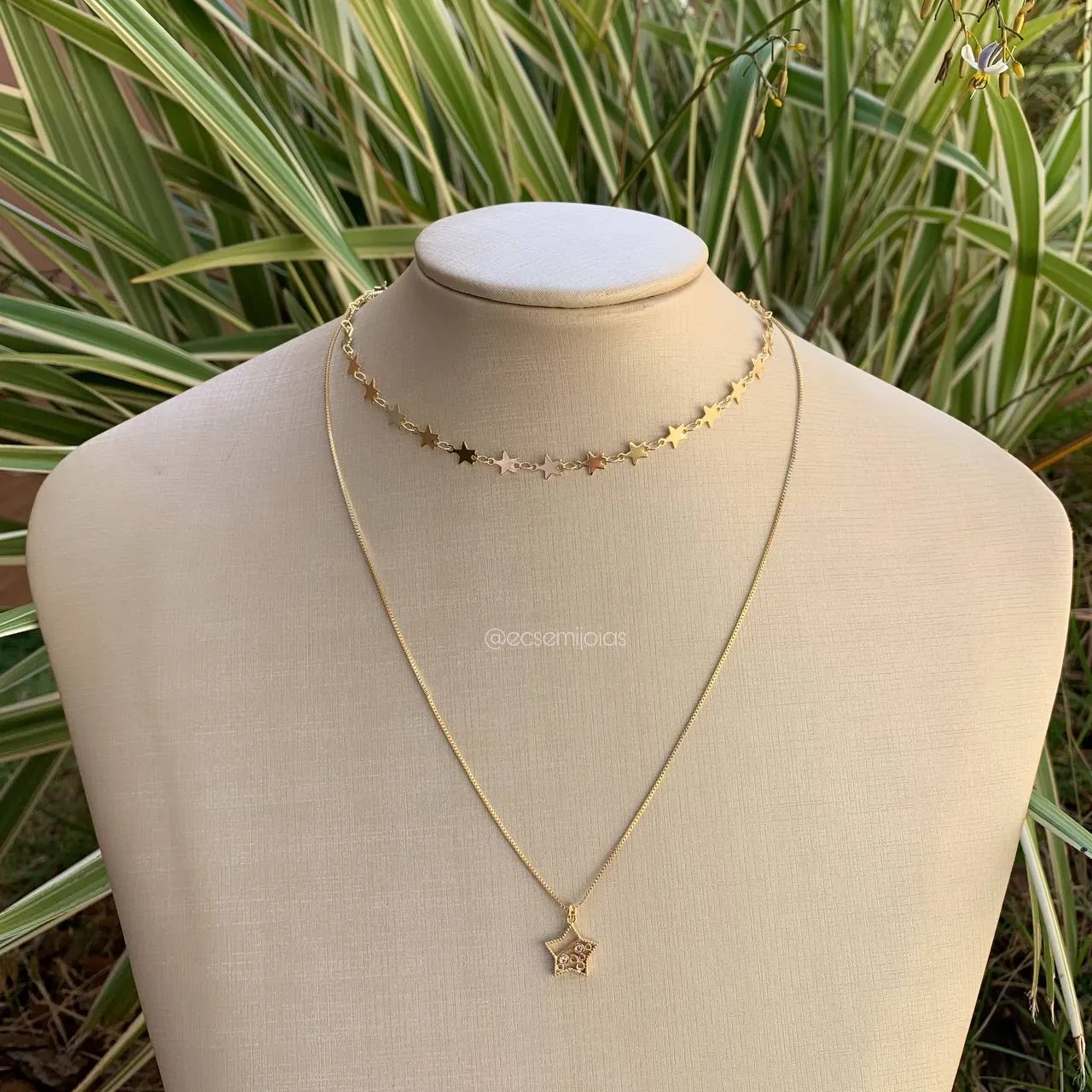 Colar 2 andares com estrelas - coleção lunar - banhado a ouro 18kConfira opiniões e avaliações de clientes!