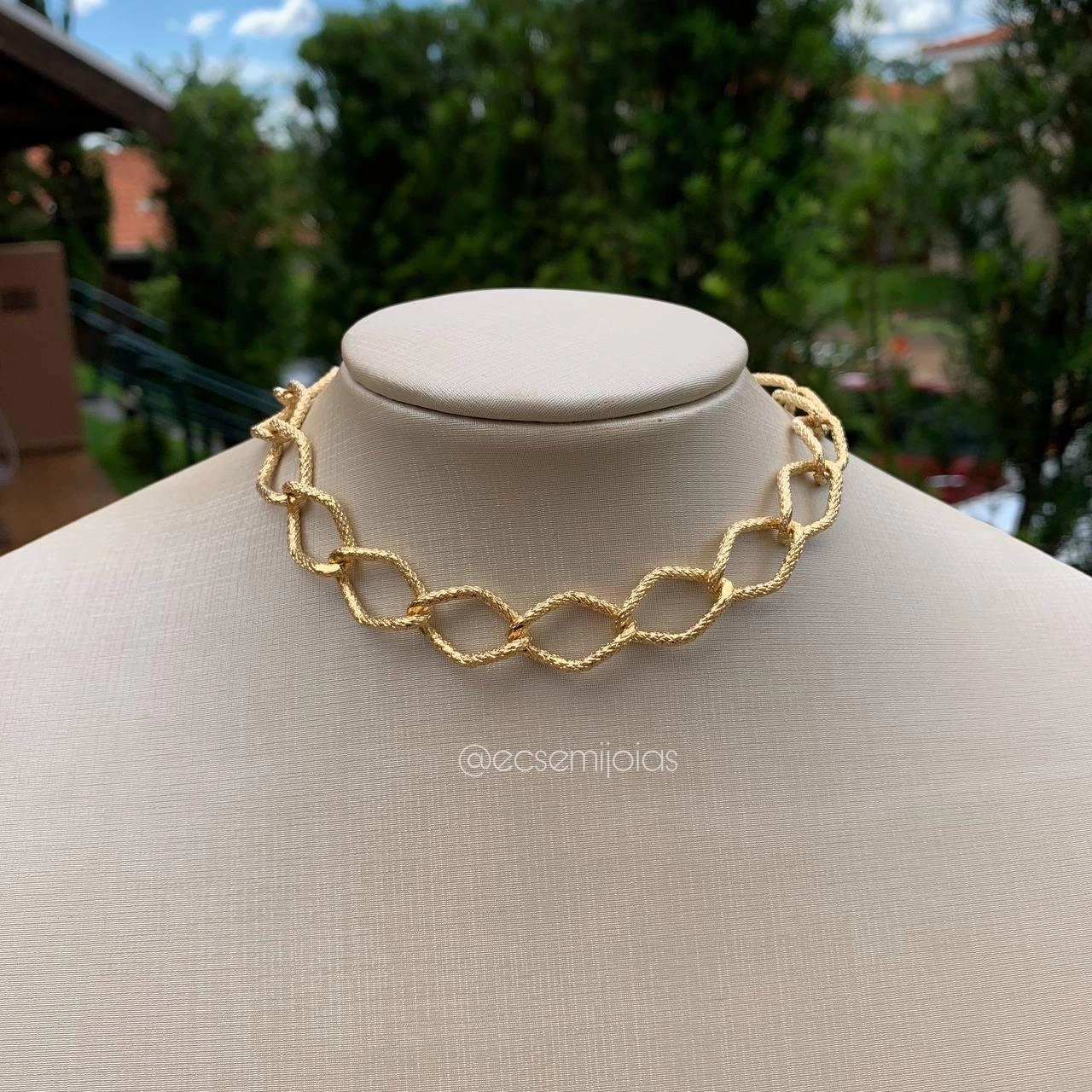 Colar choker elos torcidos 32 cm- 10mm espessura- banhado a ouro 18kConfira opiniões e avaliações de clientes!