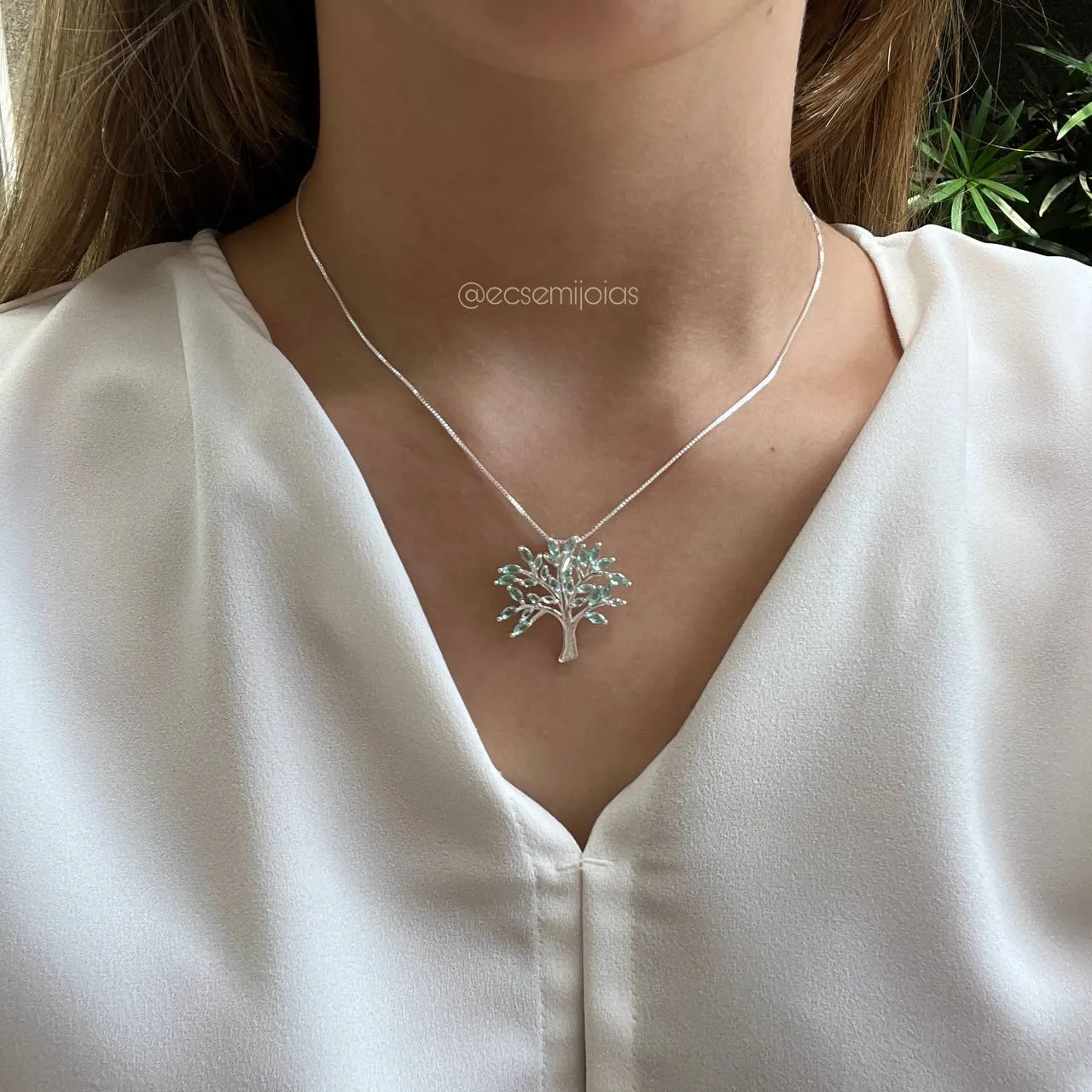 Colar colar árvore com zircônias navete -45 cm - banhado a prata 925Confira opiniões e avaliações de clientes!