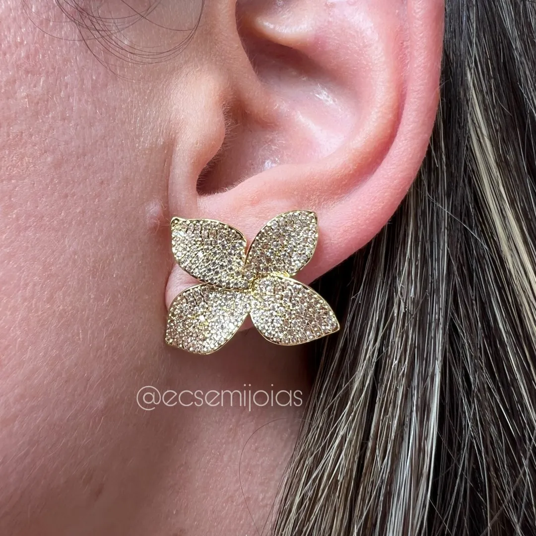 Conjunto anel e brinco com folhas cravejadas - banhado a ouro 18kConfira opiniões e avaliações de clientes!