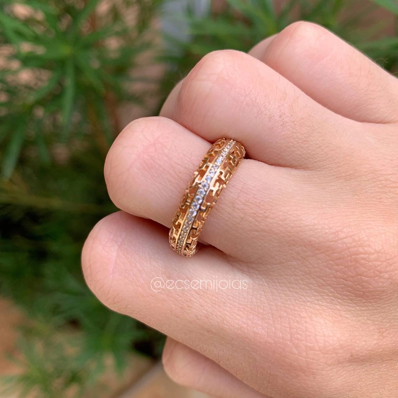 Conjunto anel e brinco trabalhado vazado cravejado - banhado a ouro 18kConfira opiniões e avaliações de clientes!