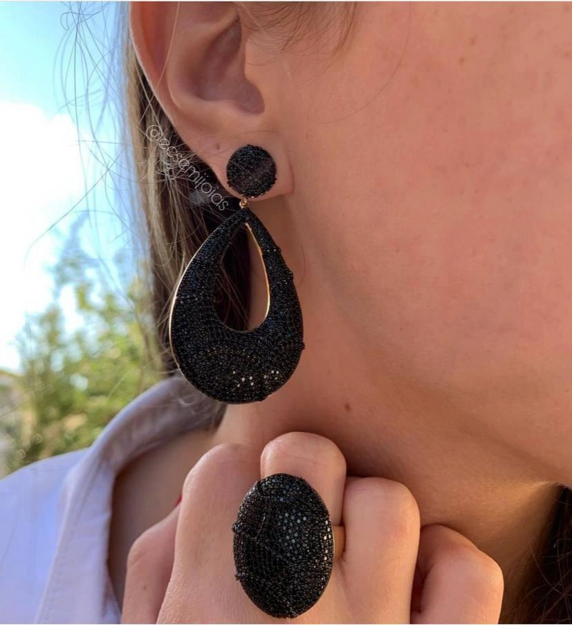 Conjunto anel e brinco vazado cravejado com base redonda - banhado a ouro 18kConfira opiniões e avaliações de clientes!