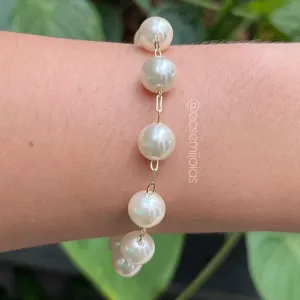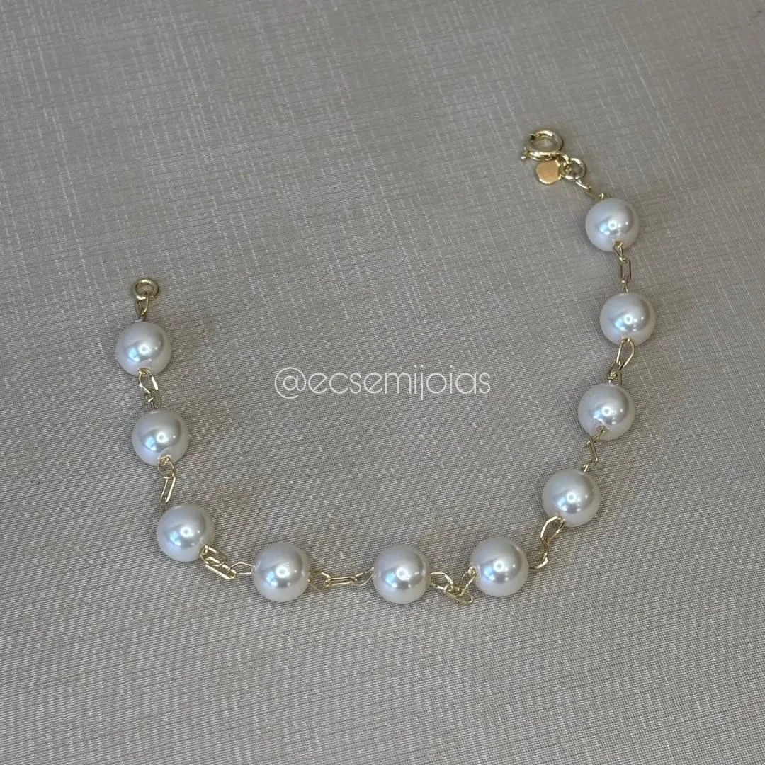Pulseira de pérolas 8mm - 20cm - banhado a ouro 18kConfira opiniões e avaliações de clientes!