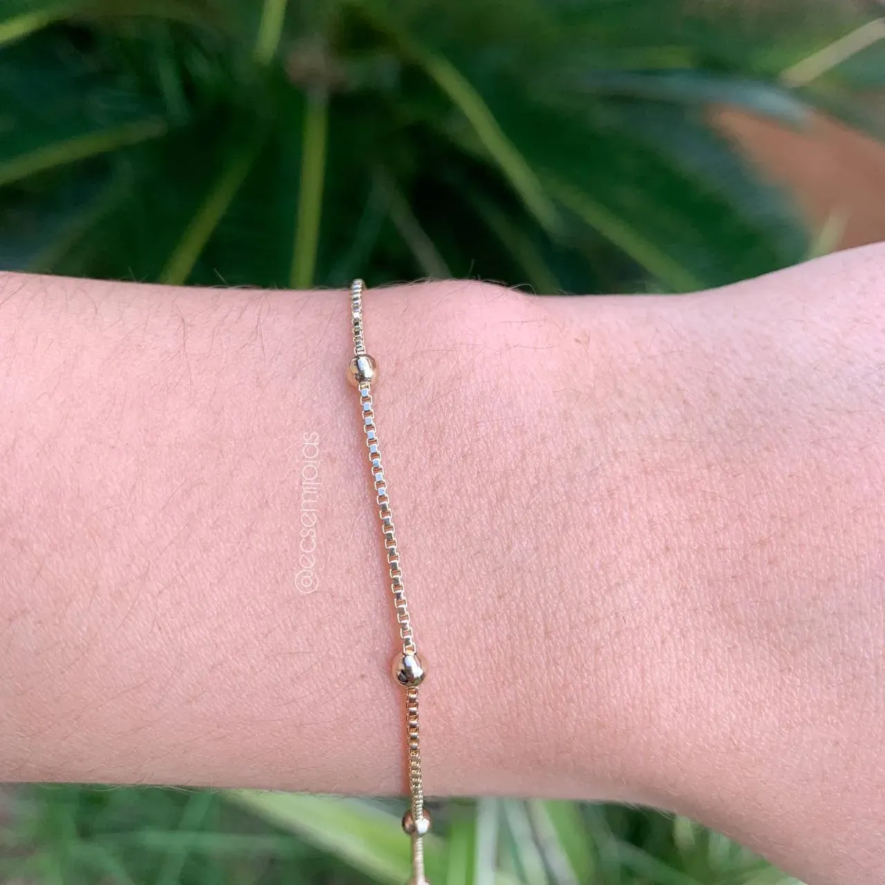 Pulseira fininha com 5 bolinhas 2mm -18 cm- banhado a ouro 18kConfira opiniões e avaliações de clientes!