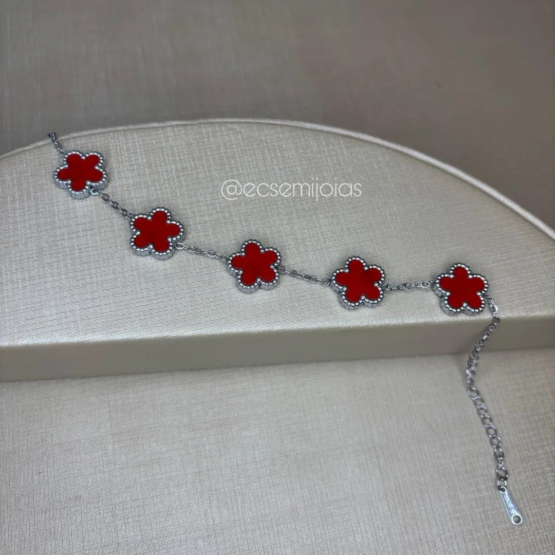 Pulseira flor com 5 pétalas - 16,5cm + extensor - açoConfira opiniões e avaliações de clientes!