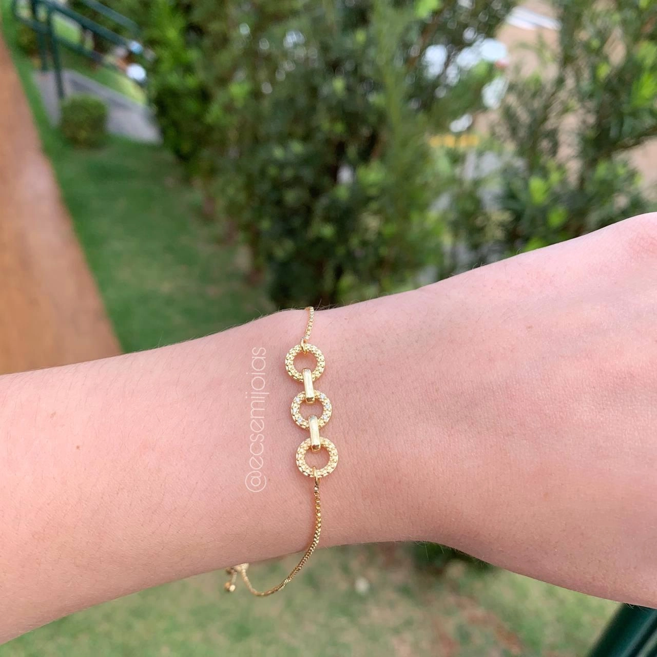 Pulseira shambala 3 círculos bombardeados- 20 cm - banhado a ouro 18kConfira opiniões e avaliações de clientes!