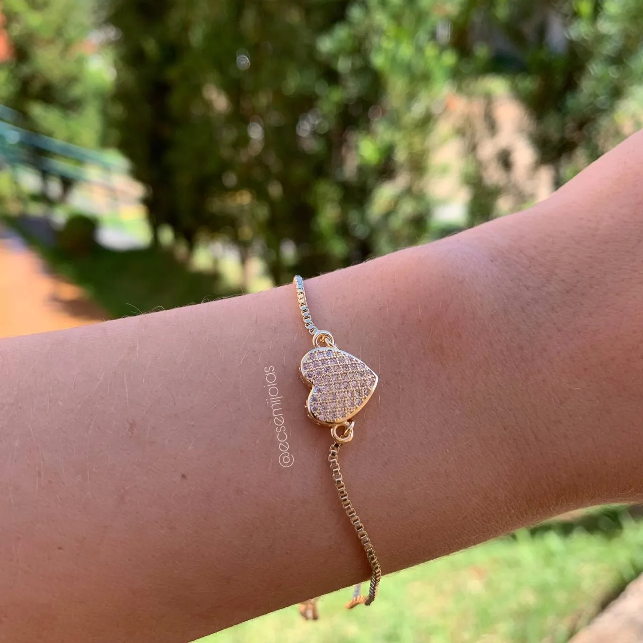 Pulseira shambala com coração cravejado - banhado a ouro 18k - coleção love colors - ajustávelConfira opiniões e avaliações de clientes!