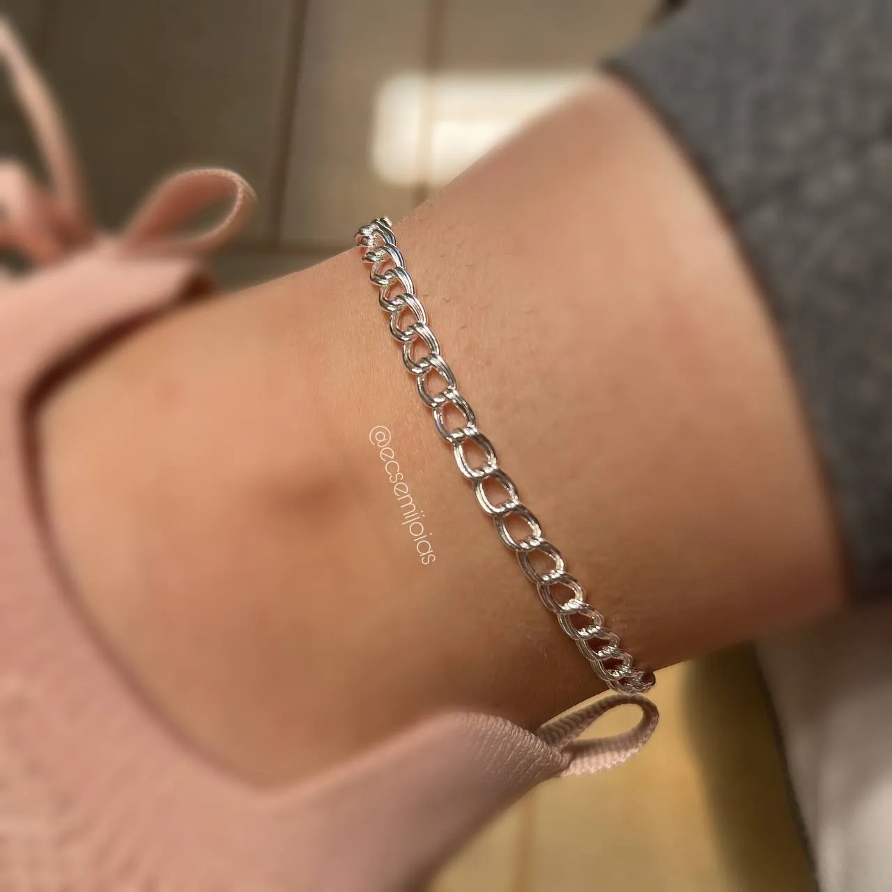 Tornozeleira de elos - 22 cm + 3 cm de extensor - banhado a prata 925Confira opiniões e avaliações de clientes!
